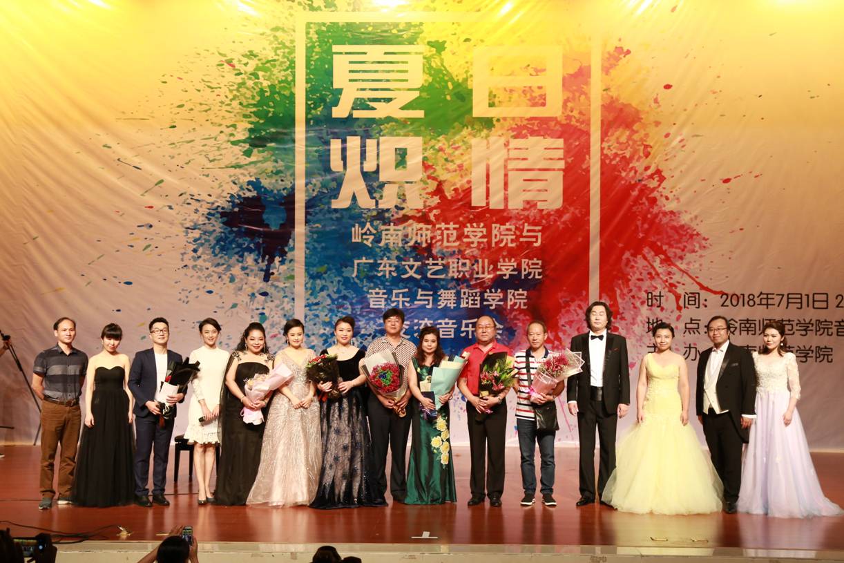 为了更好地促进岭南师范学院与广东文艺职业学院两校之间的学术交流,7月1日晚八点,由岭南范学院和广东文艺职业学院主办,岭南师范学院音乐与舞蹈学院和广东文艺职业学院音乐与舞蹈学院承办的“夏日炽情——声乐教师交流音乐会”在音乐厅举行,出席本次音乐会的有两校代表声乐教师以及众多声乐爱好者。翁玲和朱文煜主持本次音乐会。
