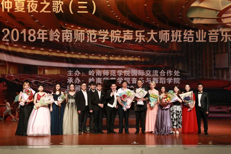 7月2日晚上八点,由岭南师范学院国际交流合作处主办,岭南师范学院音乐与舞蹈学院承办的“仲夏夜之歌(三)——2018年 岭南师范学院声乐大师班结业音乐会”于音乐厅举办,音乐与舞蹈学院的老师及学生参加了这场演出。