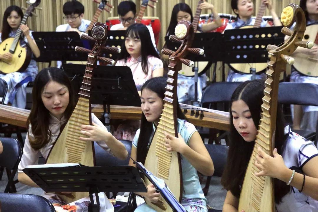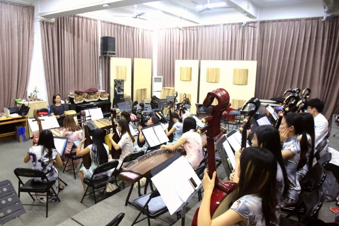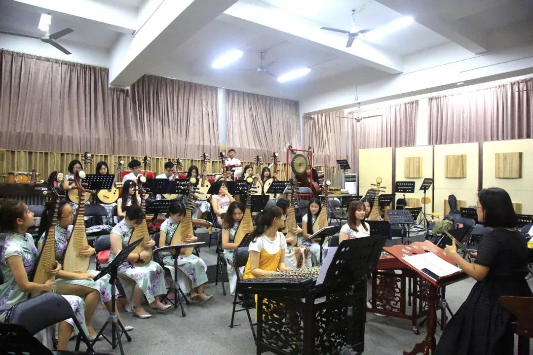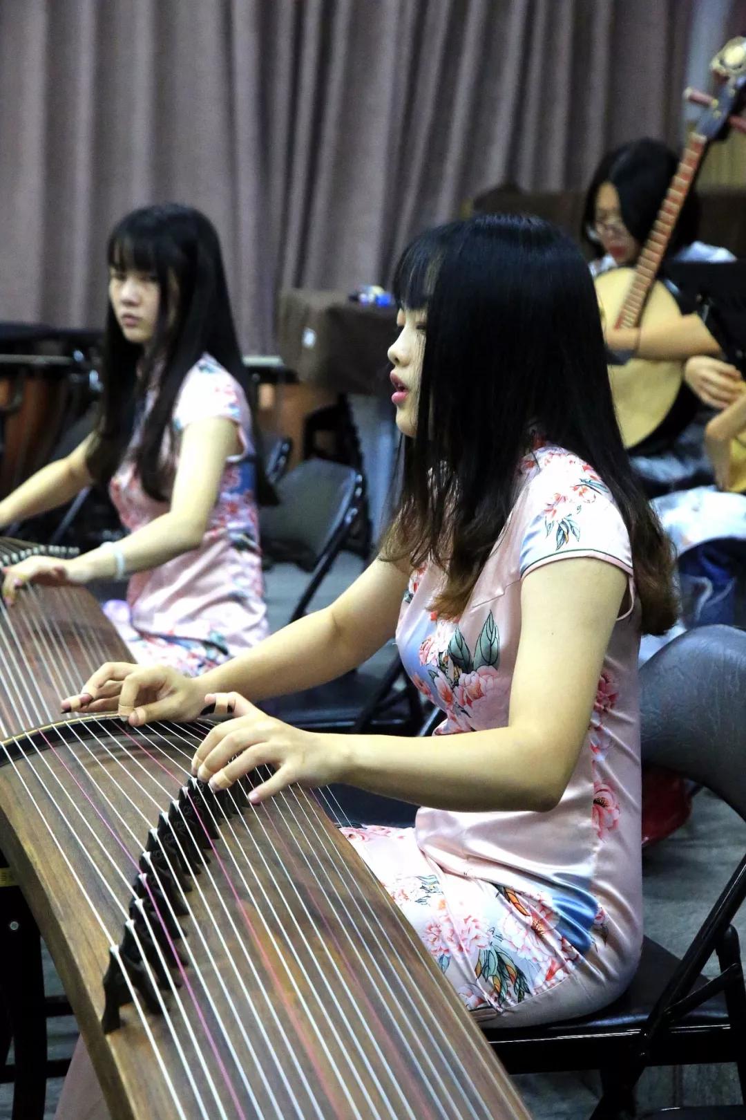 从她们的脸上我看到了她们对排练的重视,以及对比赛的期待。正可谓:“台上十分钟,台下十年功。”每一个民乐进入主旋律的和声,都反复的练习,直至它们的声音互相交融,彼此合一。她们的脸上没有对一遍遍反复练习的不满,反而是为每一次合奏的共鸣感到欢喜。整个曲子的旋律时而急促,时而缓慢,一曲完毕,慷慨激昂。