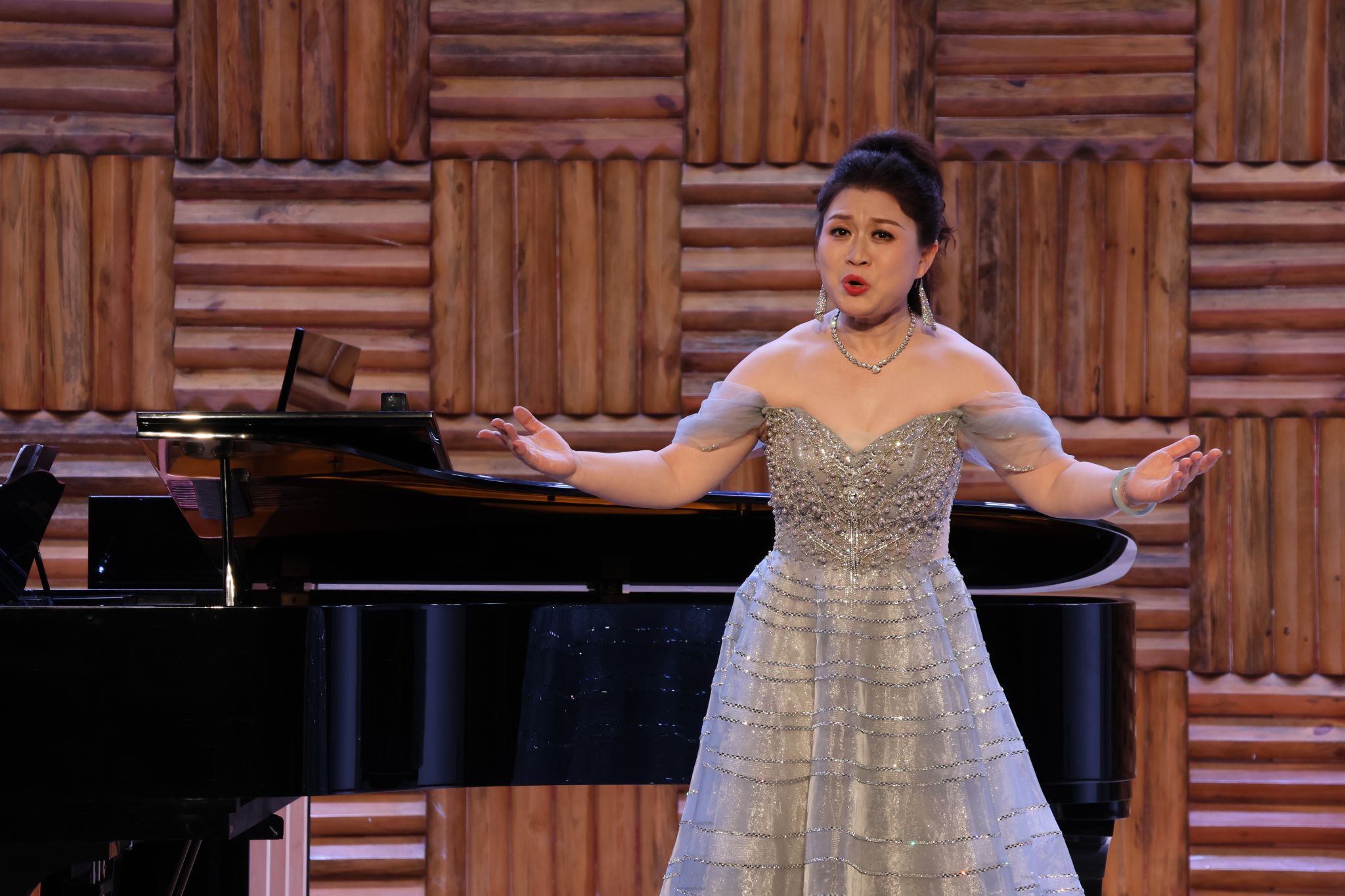 音乐会在梁尤其演唱的《走进香巴拉》中拉开序幕,藏语意境与悠扬旋律勾勒出“理想净土”的唯美画卷,钢琴伴奏杨阵雨的默契配合让现场观众瞬间沉浸。随后,一系列经典曲目轮番上演:徐钊毅演绎的意大利声乐作品《被禁止的音乐》,以细腻声线诉说爱情的向往与无奈;宾川带来的歌剧《卡门》选段《我说,我是什么也不怕》,直白展现对自由的极致追求;赵楠演唱的《多蕾塔的美梦》,尽显普契尼抒情风格的细腻与深情。