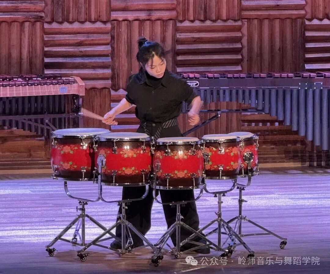 演出中,打击乐《Tamacun》以明快节奏拉开序幕;古筝独奏《行者》用悠扬弦音勾勒出悠远意境;钢琴独奏《钟》以精湛技巧展现音乐的灵动与华丽;琵琶独奏《霸王卸甲》将楚霸王的悲壮豪情演绎得淋漓尽致;民乐合奏《青花瓷》则用丝竹之音复刻出烟雨江南的诗意画卷。从独奏的细腻抒怀到重奏、合奏的恢弘共鸣,同学们以娴熟的技艺和饱满的情感,让不同器乐的特色与魅力在舞台上充分绽放,赢得现场观众阵阵掌声。