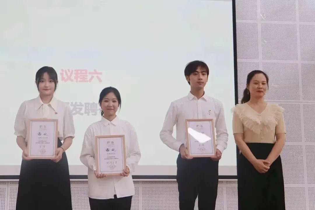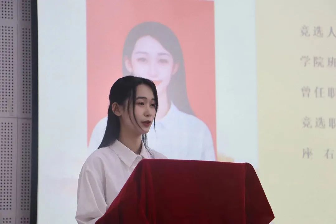 会议中,团委和学生联合会候选人依次上台进行竞选演讲。竞聘者从竞聘意向和在校主要表现,对自己所竞聘职位的理解及具体工作设想做竞聘演讲,表明了自己对本次竞选的决心。领导老师、各机构代表和学生代表三大打分组严格按照公平、公正、公开的原则进行打分与投票。经过严谨的投票打分环节、面试表现以及综合日常表现选出了第十六届学生会主席团成员田诗雨、熊乐怡、梁洁怡,团委秘书团成员刘希銮、陈迎誉、罗睿星、何施潼。换届换新,砥砺前行,他们将从上一届干部手中接过接力棒,继续为学生会、团委的发展贡献出自己的力量。