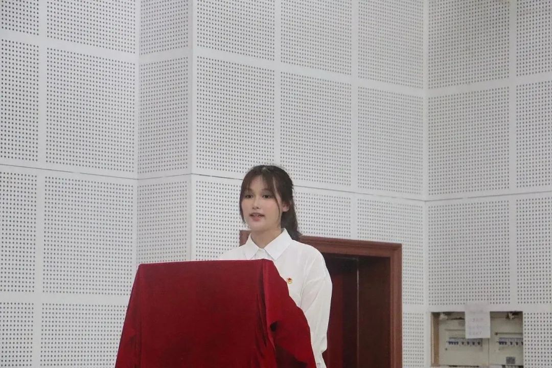 音舞院第十五届团委执行秘书长倪梓婧向大会作工作汇报。她从基础团务、社会实践、部门任务和各部门所取成绩等方面对团委在2022至2023学年的主要工作以及取得的成绩作全面系统汇报。倪梓婧感慨团委人都有着踏实做事的工作精神和坚持不懈的勇气,都有着让优秀成为一种习惯的态度,都有着成功后再接再厉的谦逊心态。
