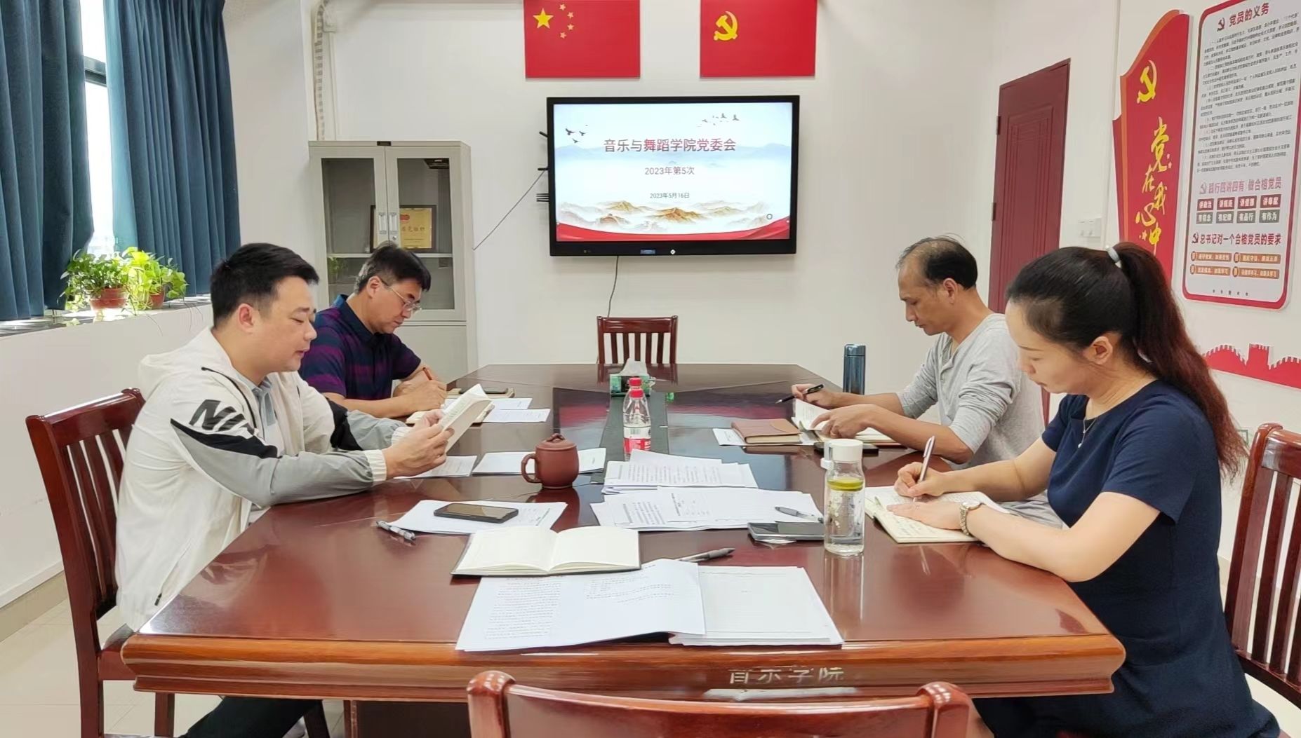 为扎实开展学习贯彻习近平新时代中国特色社会主义思想主题教育,5月16日下午,音乐与舞蹈学院在艺术楼党员活动室召开党委会,认真学习习近平总书记关于调查研究的重要论述,总结主题教育前期工作进展,部署后续的调查研究、专题党课和主题党日活动等重点工作。学院党委成员参加会议,会议由党委书记郑晓辉主持。