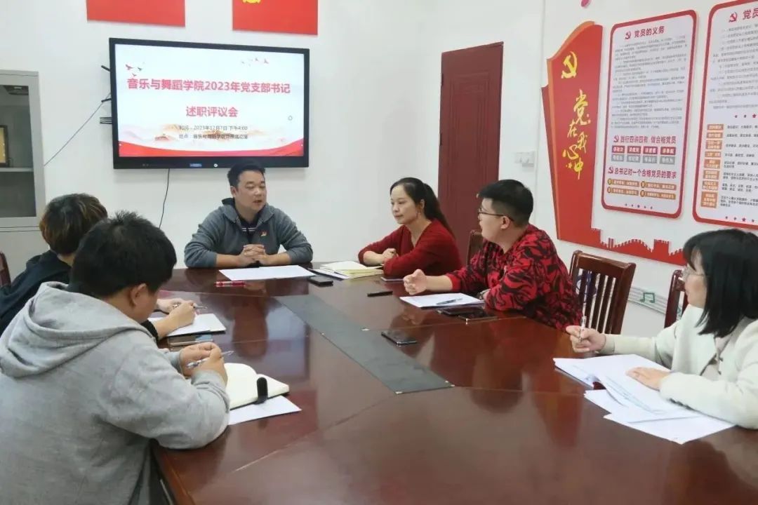 为检验学院各党支部党建工作成效,提升基层党支部组织力,推动全面从严治党纵深发展,12月7日下午,2023年度党支部书记抓基层党建工作述职评议会于艺术楼306党员活动室顺利召开。学院党委书记郑晓辉、副书记徐灵、各党支部书记与党建组织员参加会议。