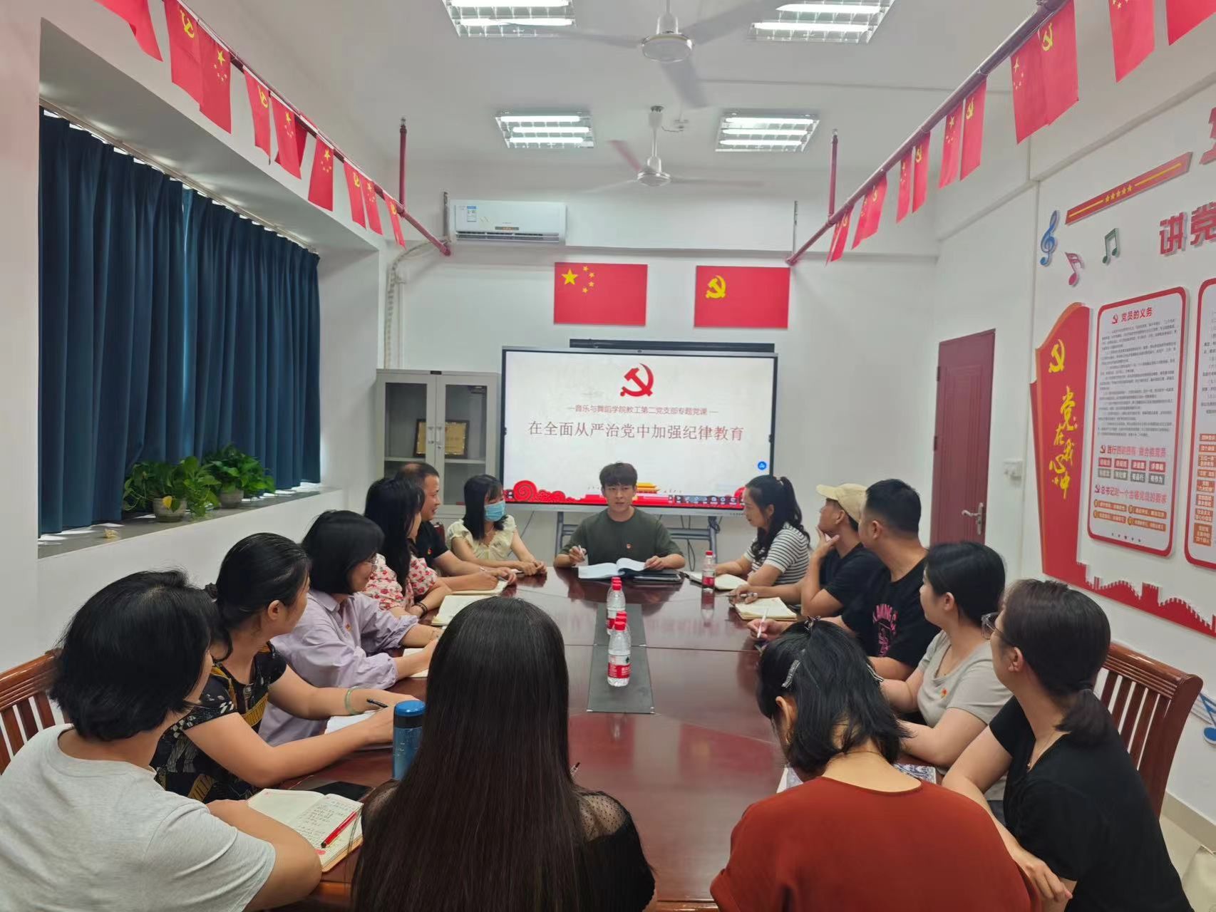 为扎实开展党纪学习教育,深入学习新修订的《中国共产党纪律处分条例》,把纪律建设摆在突出位置,切实增强支部党员政治觉悟与纪律意识,推动全面从严治党纵深发展,根据音乐与舞蹈学院党委和支部工作安排,教工第二党支部于2024年5月29日下午在艺术楼党员活动室召开《在全面从严治党中加强纪律教育》专题党课,党课由教工第二党支部书记李权主持,支部全体党员参与学习。