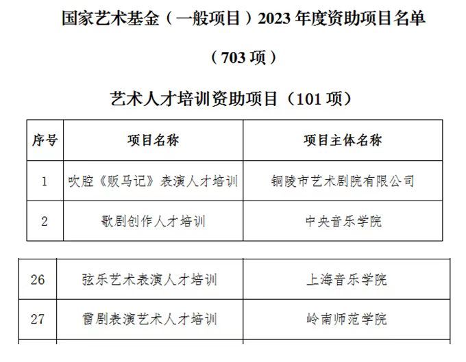 (艺术人才培训类拟资助项目部分名单)