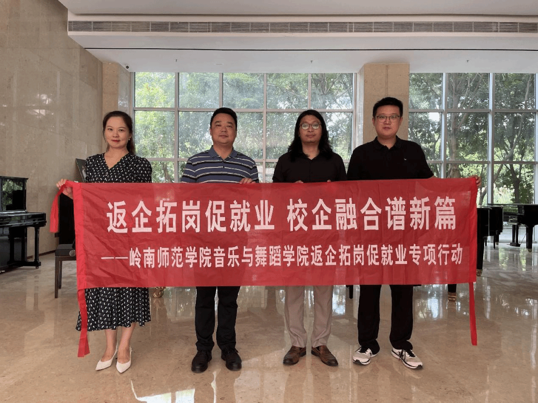 为了贯彻落实“访企拓岗促就业”专项行动工作部署,进一步推动我院毕业生的就业工作,音乐与舞蹈学院党委郑晓辉书记、徐灵副书记、学工办副主任温霄虎一行于10月23日至10月27日前往珠三角地区,对中山市小脚丫舞蹈、东莞晶品琴行和深圳中孚泰文化建筑有限公司等校友企业进行实地走访交流。