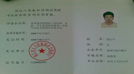 姓 名: 柴 红 年