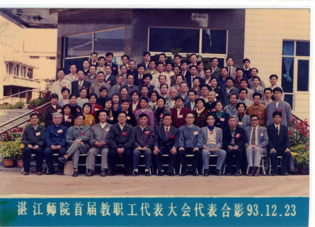 1993年12月23日,湛江师院首届教职工代表大会代表在办公楼前合影