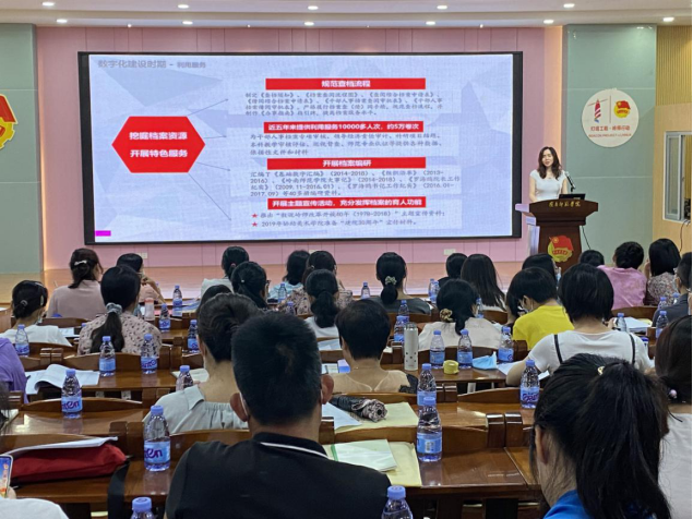 在业务培训中,周美兰从档案馆近年发展建设情况、档案法律法规、部门档案归档流程等方面深入展开讲解。扼要介绍了档案馆创新发展时期、数字化建设时期,在完善档案管理机制、优化档案工作条件、建设优质档案资源、创新档案工作方式、加强档案队伍建设、开展优质档案服务等方面取得的成效。结合工作中的实际案例,对档案法律法规进行重点介绍,强调依法治档、依法管档的责任和意识。并对部门档案归档流程各环节的关键点进行了细致讲解。同时,指出以往工作中出现的问题,要求杜绝类似问题。