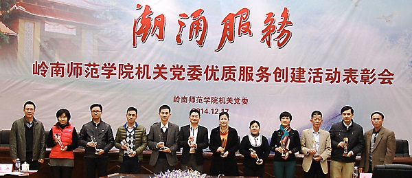 岭师新闻中心讯:12月17日晚,机关党委优质服务创建活动表彰会在国际会议厅召开,校党委梁英书记、彭权群副书记,学校党委部门主要负责人,机关党委委员,机关各党支部全体支委以及获奖人员出席了会议,机关党委黄达海书记主持表彰会。