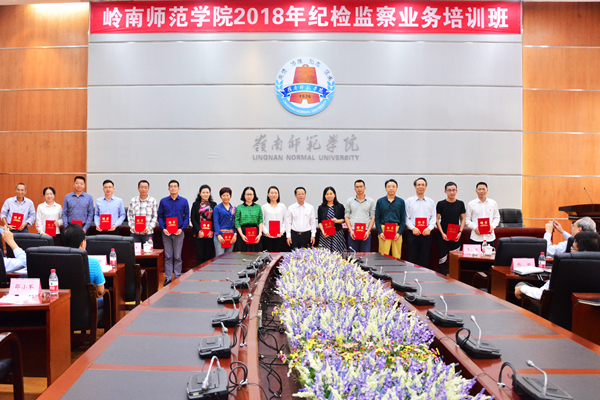 岭师新闻中心讯:12月5日下午,学校2018年纪检监察业务培训班在国际会议厅开班。学校党委副书记、纪委书记王恒胤作培训动员,并为我校新一轮19位特约监察员颁发了聘书。湛江市纪委第四纪检监察室主任张诞生作了题为“严守党纪国法,牢固反腐防线”的专题讲座。