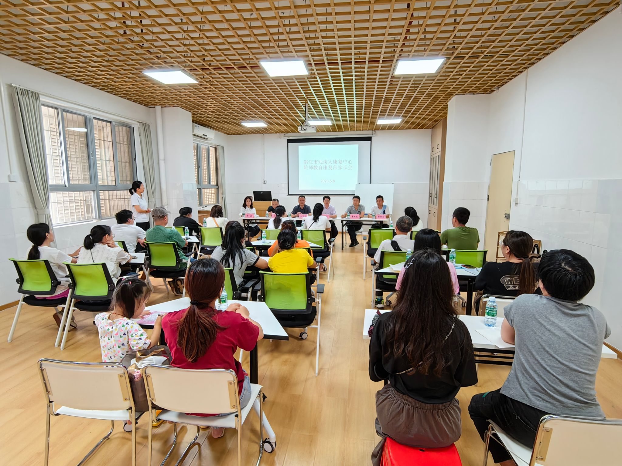 2023年5月8日,湛江市残疾人康复中心岭师教育康复部在省重点实验室家长服务中心112室召开家长会,湛江市残疾人康复中心何家伟主任、省重点实验室常务副主任郑剑虹、省重点实验室副主任李清华、家长服务中心负责人李继波、孤独症康复实验室负责人杨溢、省重点实验室办公室主任彭强龙参加了会议。