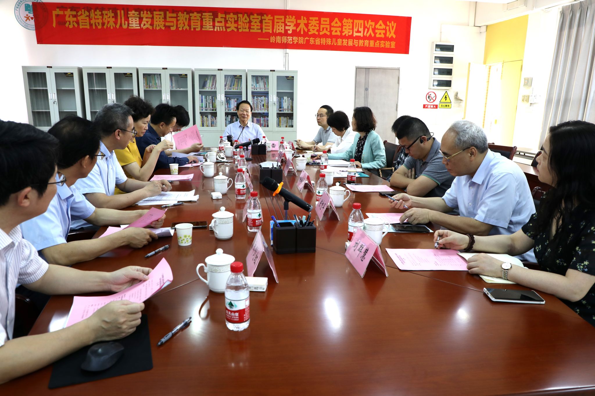 广东省特殊儿童发展与教育重点实验室首届学术委员会第四次会议在岭师第四教学楼E703会议室召开,会议听取和审议了实验室研究进展、迎接2025年省科技厅考核评估工作计划以及省重点实验室的分类事宜,对省重点实验室2023年度开放基金进行终审。省特教重点实验室学术委员会主任、华南师范大学资深教授莫雷主持会议,岭南师范学院党委书记、省特教重点实验室主任兰艳泽作总结讲话,学校副校长吴涛、华师帮扶队队长卢勃出席会议。
