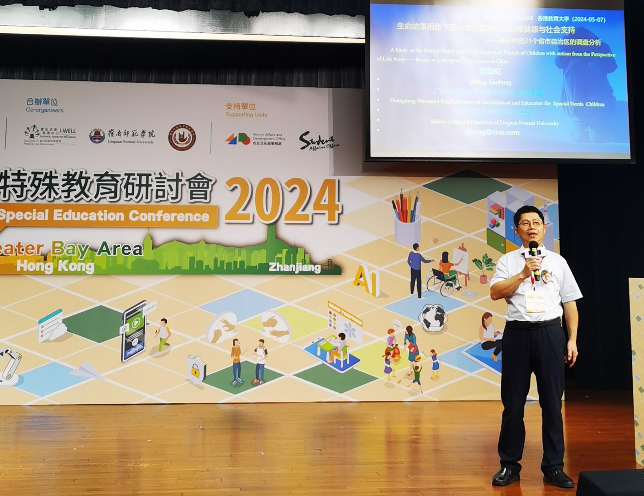 由香港教育大学特殊教育与辅导学系主办的携手同行特殊教育研讨会和“岭南特殊教育联盟”筹备会议于5月7日-8日在香港教育大学举行。省重点实验室常务副主任郑剑虹教授、副主任李清华教授、特教系执行系主任杨洁博士、董富占老师参加了会议。