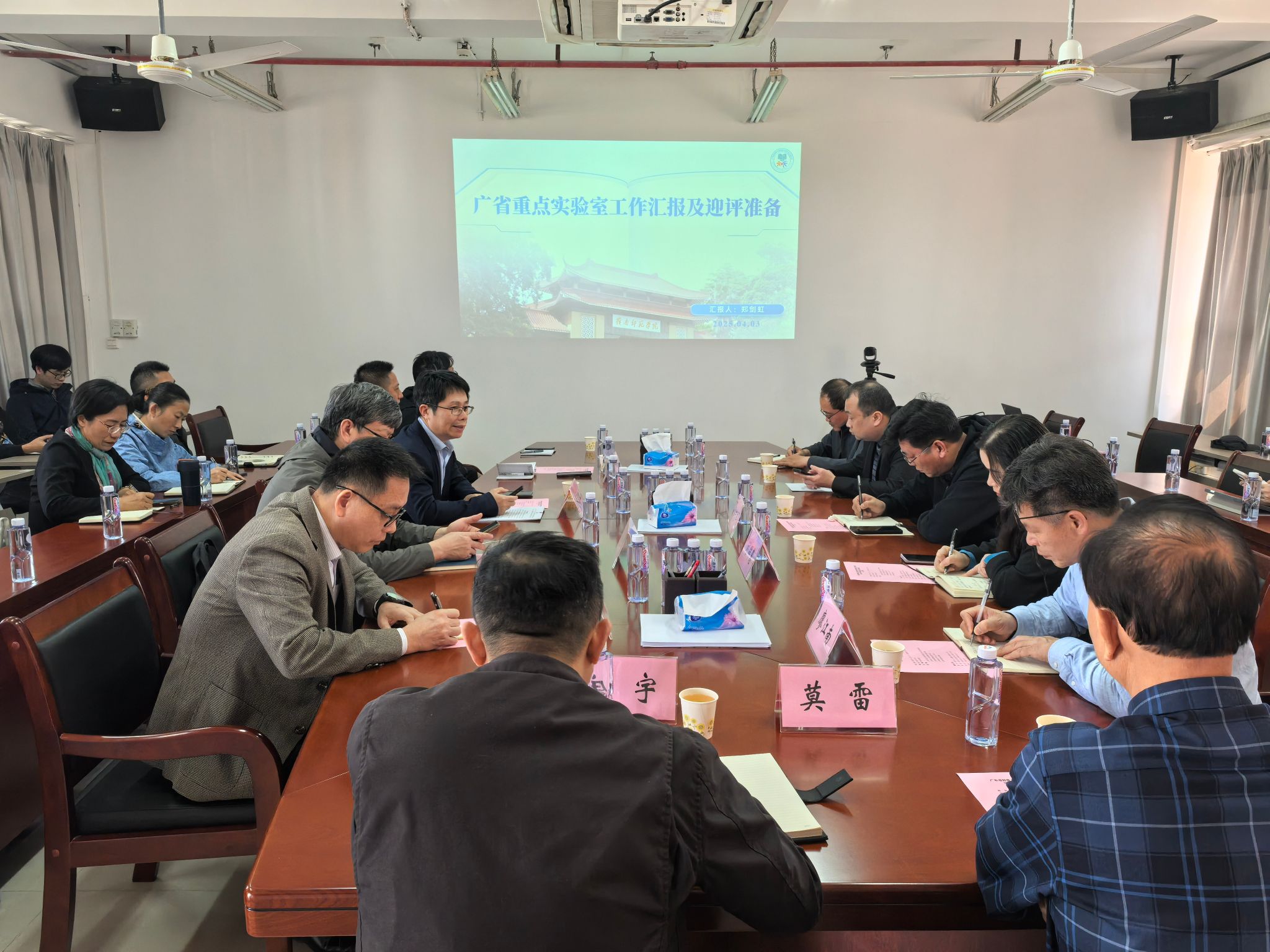 会议上,省重点实验室常务副主任郑剑虹做重点实验室工作汇报,介绍了上一验收周期成果总结,汇报了本轮评估周期成果,提出了迎接2025年评估的工作准备及建议。接着,实验室科研人员和职能部门领导对实验室2025年的评估准备工作提出了建议,省重点实验室学术委员会主任莫雷综合评价了大家的建议,提出了实验室要解决社会上的热点问题,并给出了方向指导。
