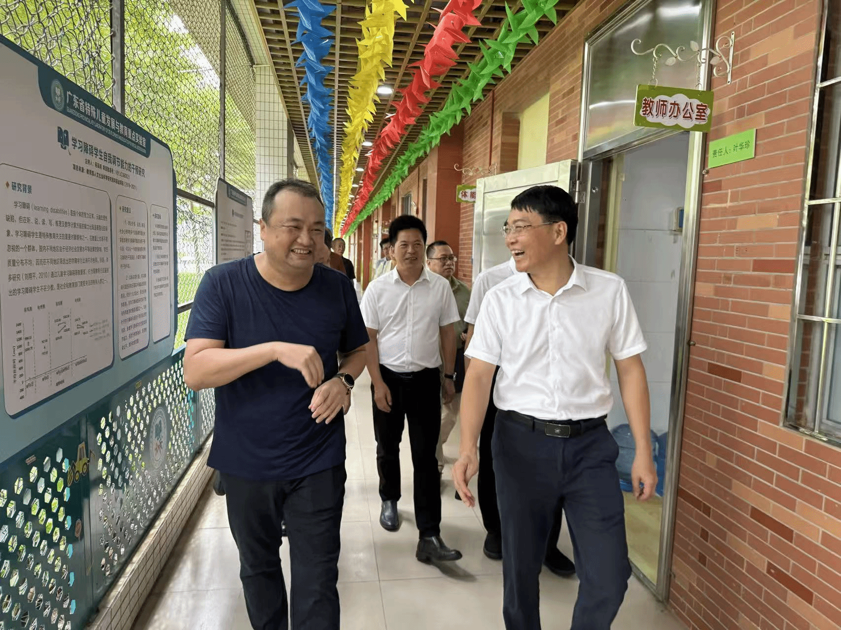 9月8日,湛江市人大常委会副主任、市总工会主席李更盛一行莅临我校慰问座谈,并参观指导广东省特殊儿童发展与教育重点实验室。学校党委常委、副校长刘坤章,省重点实验室常务副主任郑剑虹、副主任李清华等领导陪同调研。