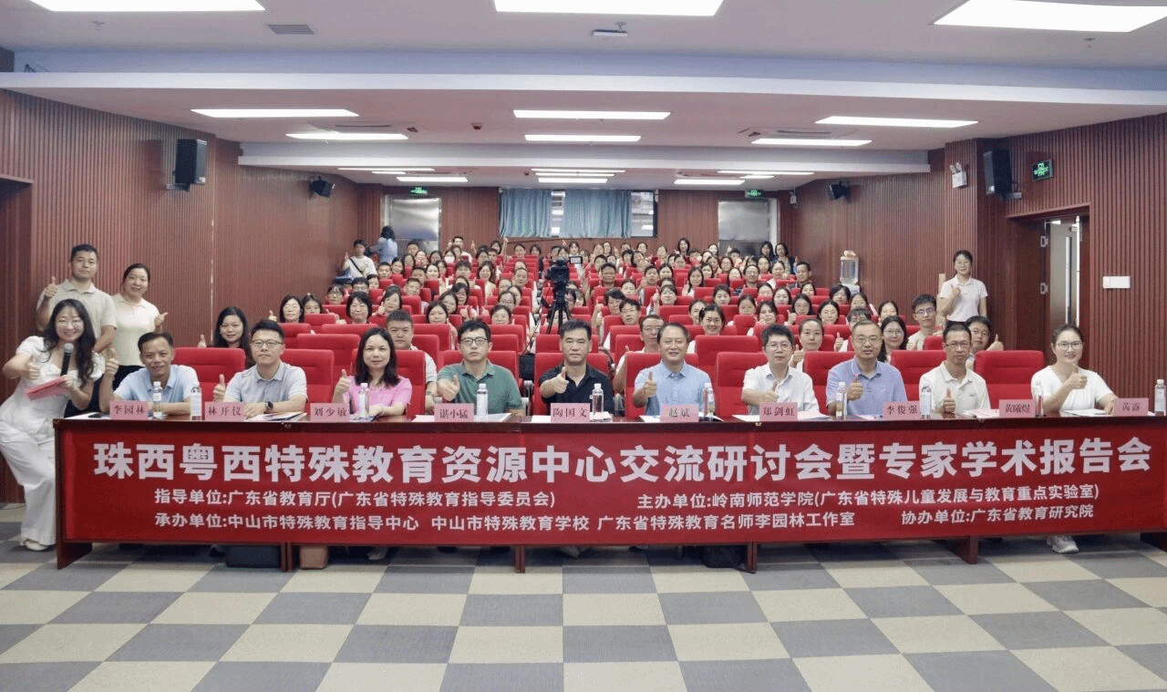 金秋十月,硕果盈枝。2025年10月12日至13日,由广东省特殊教育指导委员会指导,岭南师范学院(广东省特殊儿童发展与教育重点实验室)主办,中山市特殊教育指导中心、中山市特殊教育学校、广东省特殊教育名师李园林工作室承办的“珠西粤西特殊教育资源中心交流研讨会暨专家学术报告会”,在中山市特殊教育学校隆重举行。来自湛江、江门、茂名、阳江、阳春、中山、云浮七市的特殊教育资源中心工作者与特邀专家共聚一堂,围绕“区域协同·融合提质——共筑珠西粤西特殊教育优质资源生态圈”这一核心主题,深入探讨特殊教育资源中心的发展路径与创新方向,为广东省特殊教育事业高质量发展注入强劲动力。