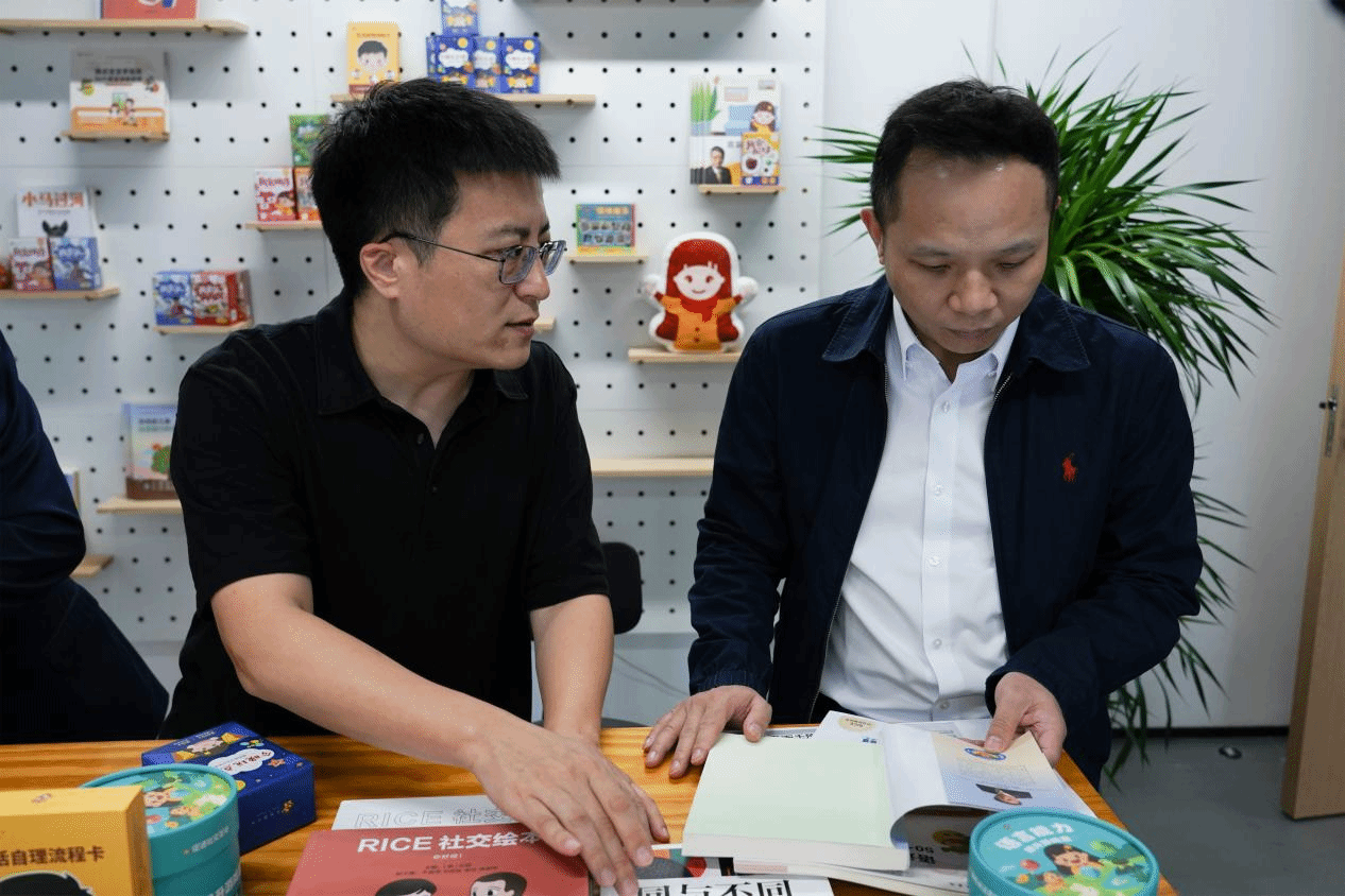 交流伊始,唐宇一行参观了众米互联的办公地点。在RICE AI系统的显示屏前,众米互联CEO王占伟演示了RICE AI系统的功能与使用方法,详细介绍了RICE AI在整理儿童评估报告、设计教案、制作教具、撰写教学反馈等场景中的实操应用。随后的座谈中,王占伟介绍了企业的发展历程。