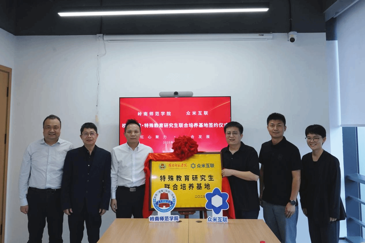 其三,双方共建特殊教育研究生联合培养基地,众米互联为岭南师范学院特殊教育研究生、本科生提供基于企业场景的“AI+特殊教育”培养方案和实践机会,旨在帮助学生在校期间深入企业实践场景,为特殊教育行业培养理论实践俱佳的人才。