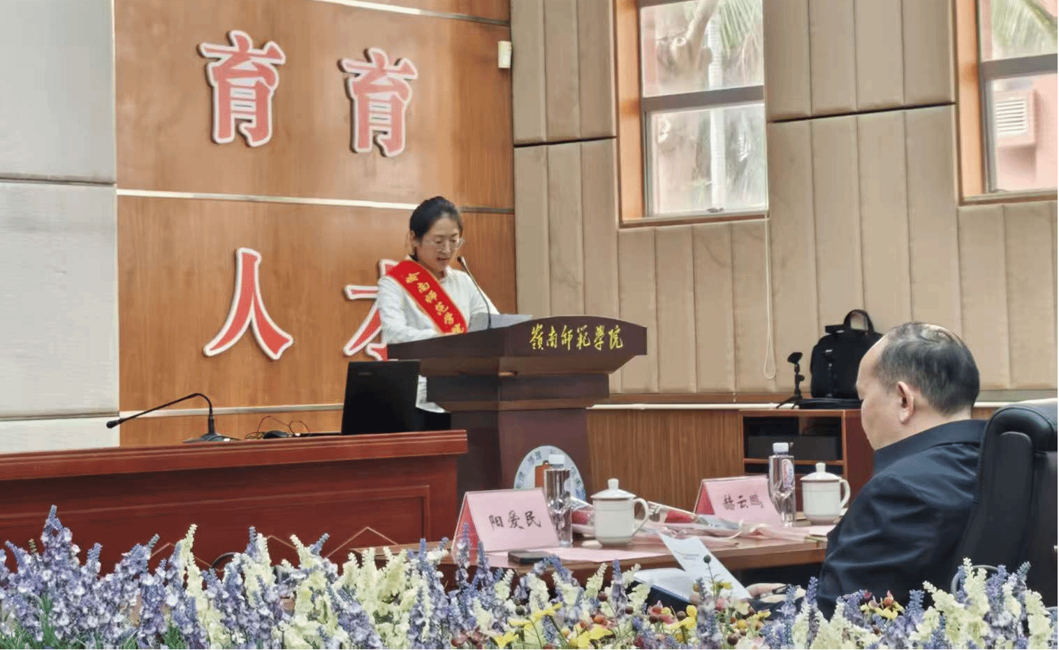会上,刘旭萍作为“巾帼建功标兵”深情分享了她扎根岭师、潜心科研与育人的奋斗故事。