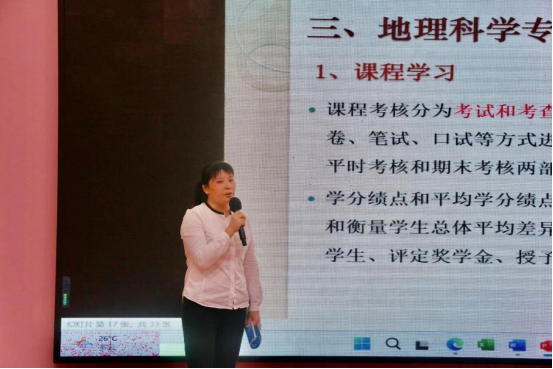出席本次地理科学专业介绍会的有全柱书记、副院长牛东风、地理科学系老师、辅导员以及22级地理专业的全体学生。