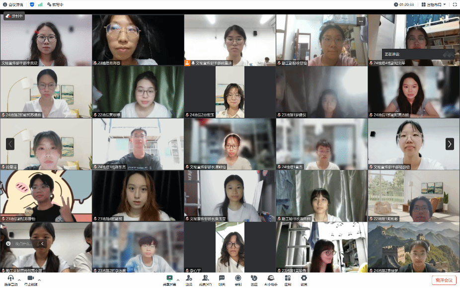 地理科学学院勤工与心康服务中心于2025年6月8日19:30在腾讯会议平台成功举办第二届“优秀副班”评选活动,旨在提升副班工作效能、激发工作积极性并推动班级建设。勤工与心康服务中心秘书长潘雨桐、各二级学院学生干部代表及2022-2024级全体副班参加此次活动。通过述职演讲展示、综合考评、经验分享等环节,活动全面展现了副班队伍在班级管理、学风建设等方面的工作成效,为全体副班提供了交流学习平台,也为今后更好地开展班级工作奠定了坚实基础。