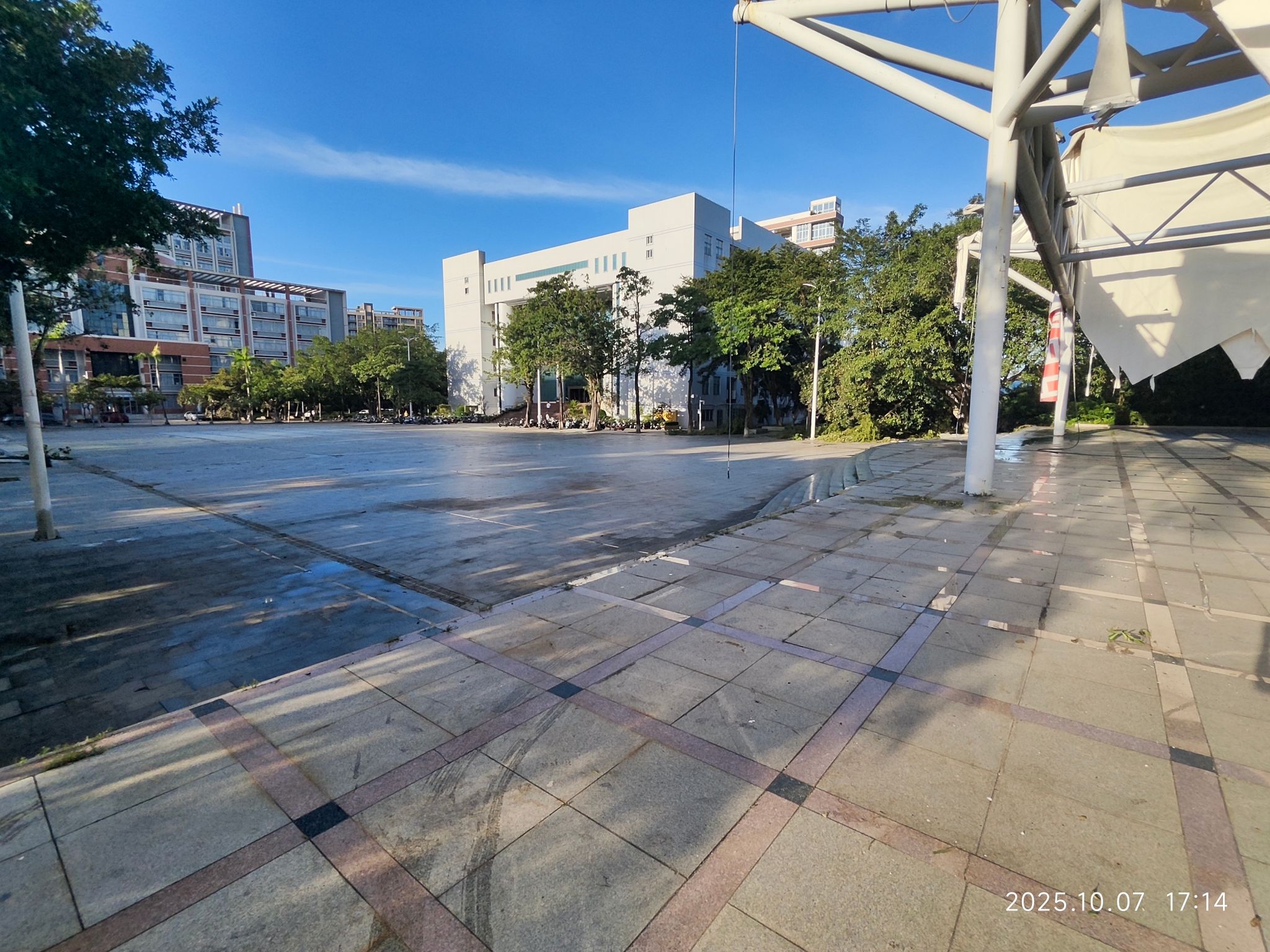10月7日下午,为尽快恢复台风“麦德姆”过后的校园环境,地理科学学院积极响应学校号召,组织师生开展台风灾后清扫工作。学院党委书记全柱、副书记王雄艺亲自带队,与辅导员、学生志愿者共同参与,重点清理教二广场和图书馆前广场的断枝落叶和积水。