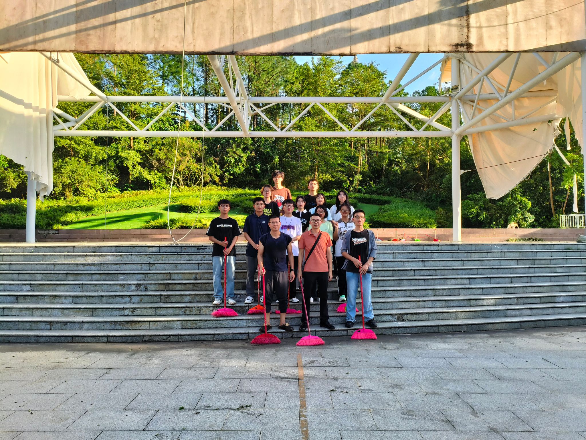 经过近两个小时的紧张劳动,教二广场和图书馆前广场的环境得到明显改善,恢复了往日的整洁通畅。此次清扫行动不仅迅速恢复了校园环境,更展现了学院师生团结一心、共克时艰的精神风貌。