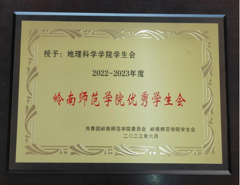 图丨“岭南师范学院优秀学生会”荣誉牌匾