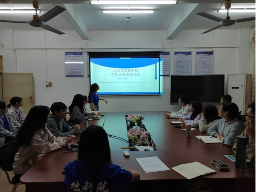 为促使我院学生会工作人员进一步明确工作开展的方向、增强自身责任感与认同感,全面提升学院学生会工作人员自身的建设质量,增强各部门组织协调能力,更好地发挥地科院学生会在学院管理工作中的作用。3月28日晚上21:30,地科院学生会于第二教学楼310教室组织开展了2023年度春季培训会。参加此次培训会的人员为地科院学生会全体工作人员,主讲人为学生会主席团成员黄素菊。