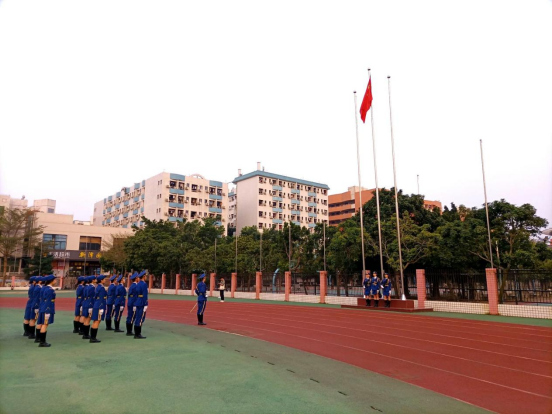 活动伊始,英姿飒爽的国旗护卫队迈着铿锵有力的步伐,以饱满的热情护卫着国旗走向升旗台。随后,庄严激昂的国歌声响彻田径场,鲜艳的五星红旗在师生们的集体注目下冉冉升起,迎风飘扬。全体师生们怀着崇敬与喜悦的心情,凝视着熠熠生辉的五星红旗,一股自豪感油然而生。
