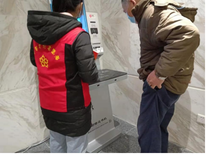 在协助群众的过程中,需要不停强调排好队,保持距离,手机屏幕亮度调最高,把手机垂直放。为了方便扫描记录核酸群众信息,加快工作速度。群众也配合志愿者工作。其中遇到的很多的问题是因为许多中老年群体不会调手机亮度,不会打开微信小程序——葵花码,填写个人信息,这时就需要其他志愿者协助,不然就会影响核酸检测速度。在经历了几天的核酸检测后,我们的设备和葵花码一直的更新,极大了提高信息录入的准确度和速度,这就是中国速度。