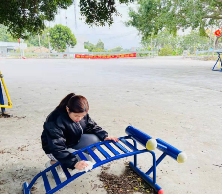 虽然说乡村没有正规的志愿活动,但是我做的这件事就很有青年志愿服务的性质。我每天都会打扫两次乡村公用运动器材场所并会抹洗运动器材,并进行消毒工作。在我服务期间,若是看到有村民对于运动器材的使用不太了解,我还会主动上前讲解并引导村民使用,当然这些工作都是在我做好防疫工作的前提下进行的。