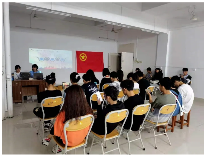 会上,干部林亚娟向学生简单介绍“第二课堂成绩单”,并对其内容进行讲解说明;干部金黔粤对“第二课堂成绩单”的使用进行介绍。