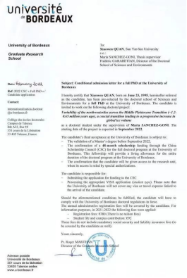 近日,从国家留学基金委传来喜讯,我院地理科学专业2015级学生全晓文经过国家留学基金委专家评审,获得国家公派出国留学资格,将前往法国波尔多大学攻读博士学位,国家留学基金委将资助一次性往返国际旅费和提供培养期间的奖学金。