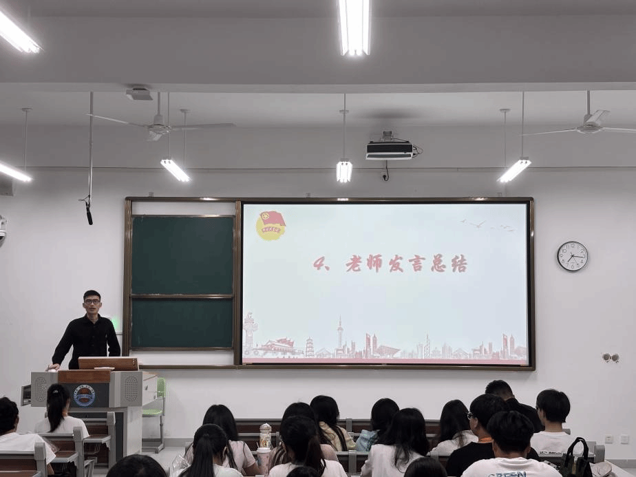 议程四:团委指导老师发言。辅导员郭晓耿在发言中指出各部门工作存在不足,针对问题提出切实可行的改进建议,要求优化工作机制、提高工作效率。同时,对各部门提出具体工作要求与期望,强调要围绕新校区建设需求,策划开展更多有创意的活动。