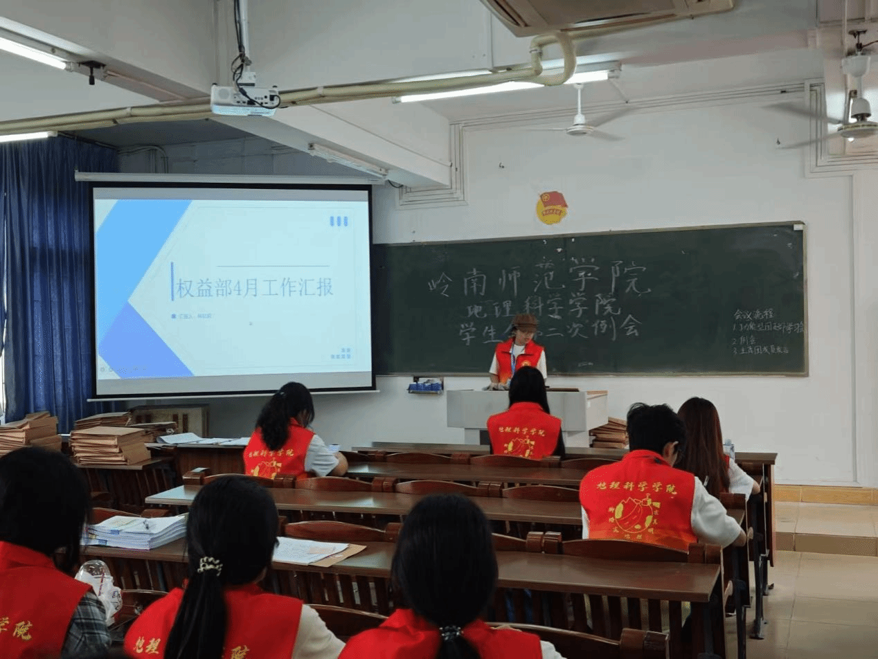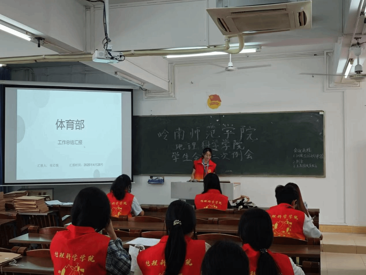 进入工作汇报环节,地理科学学院学生会办公室、学习部、体育部和权益部的汇报人依序登台发言。汇报过程中,各部门不仅全面梳理了近期重点工作成果,也指出了工作短板,并结合当前情况针对性地提出了未来工作展望,制定详细的工作计划与目标,展现出积极进取、全心全意为同学服务的决心。