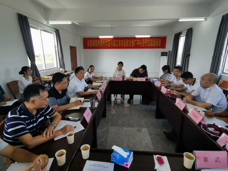 9月23日下午,岭南师院地理科学学院党委全柱书记、薛书文院长、王雄艺副书记、牛东风副院长、信息系统系主任罗松英博士、实验中心主任黄日辉博士以及万海波博士、章武博士、宋秀丽博士到湛江市农业技术推广中心举行了合作交流座谈会,湛江市农业农村局党组成员、副局长林国栋,中心领导班子及科技业务骨干参加本次座谈会。会议由湛江市农业技术推广中心陈敏忠主任主持,双方就产学研基地合作、人才培养、项目申报、技术交流等问题进行深入研讨。会上陈敏忠主任介绍了推广中心的人员构成及科研推广等工作的开展情况。薛书文院长介绍了地理科学学院的学科构成及科研方向,并鼓励青年老师将科研成果落地生根,解决大田生产瓶颈问题,为湛江农业发展、乡村振兴做出应有的贡献。林国栋副局长做了总结发言,建议双方就科研项目、示范基地建设、人才培养等方面加强合作,紧抓落实,实现双赢,同时要求我中心干部职工向地理科学学院的老师学习,在工作中要做到务实、创新、不断推进中心全面发展。会后,大家参观了我中心土壤检测化验室及实验种植基地,薛书文院长对我中心的检测化验设施及条件表示赞赏。随后,陈敏忠主任也带领大家考察参观了中心的地理环境,全柱书记表示,双方优势互补,可以进一步加强交流和扩大合作领域。
