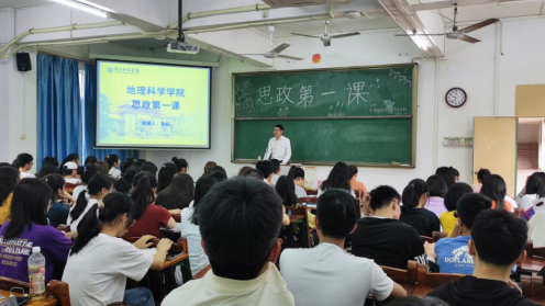 4月11日,地理科学学院组织学生干部于咏雷楼108室开展思政第一课,课程由学院党委全柱书记主讲,党委王雄艺副书记、辅导员陈水英和许恩兰老师及全体学生干部参加。