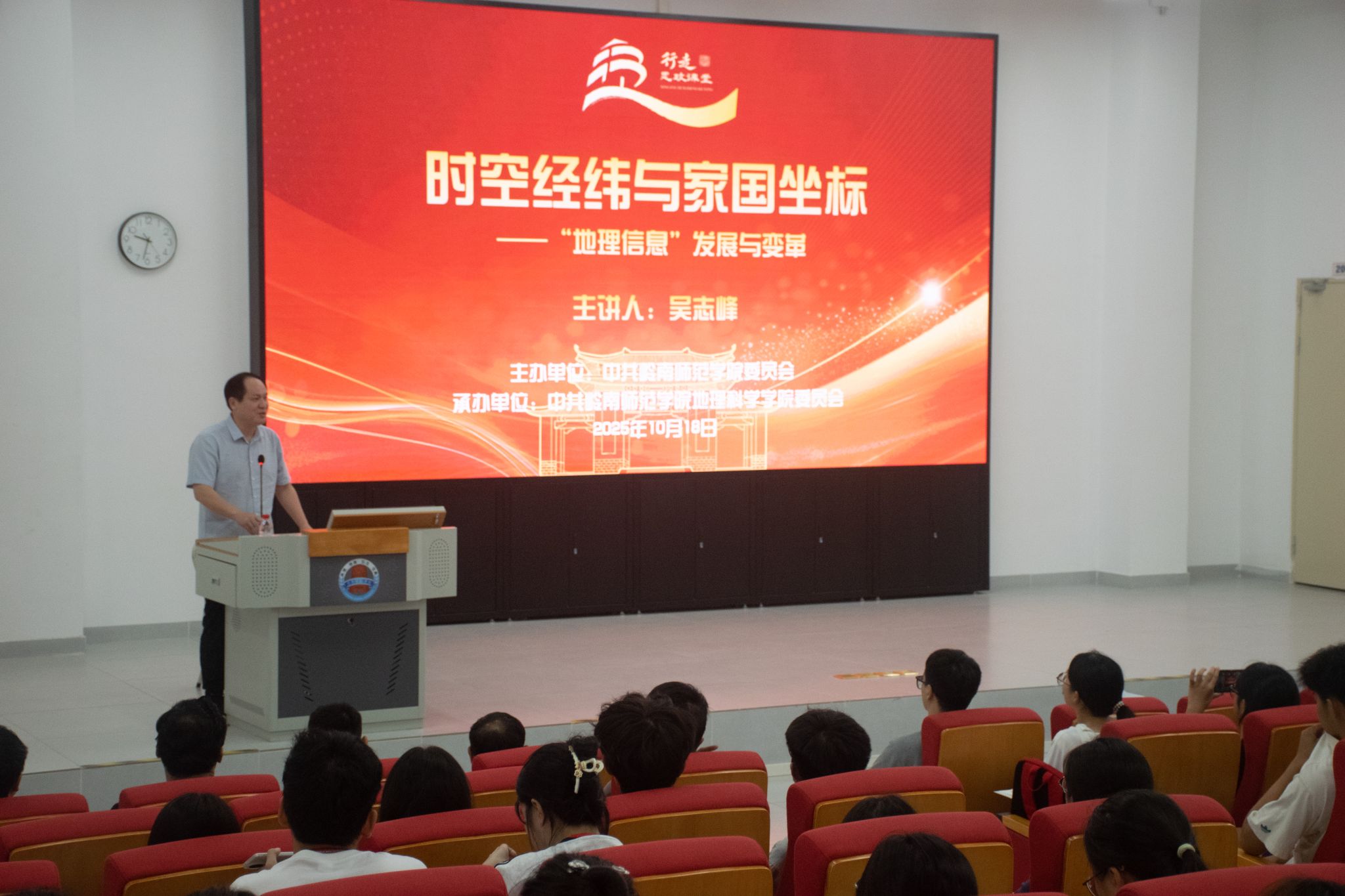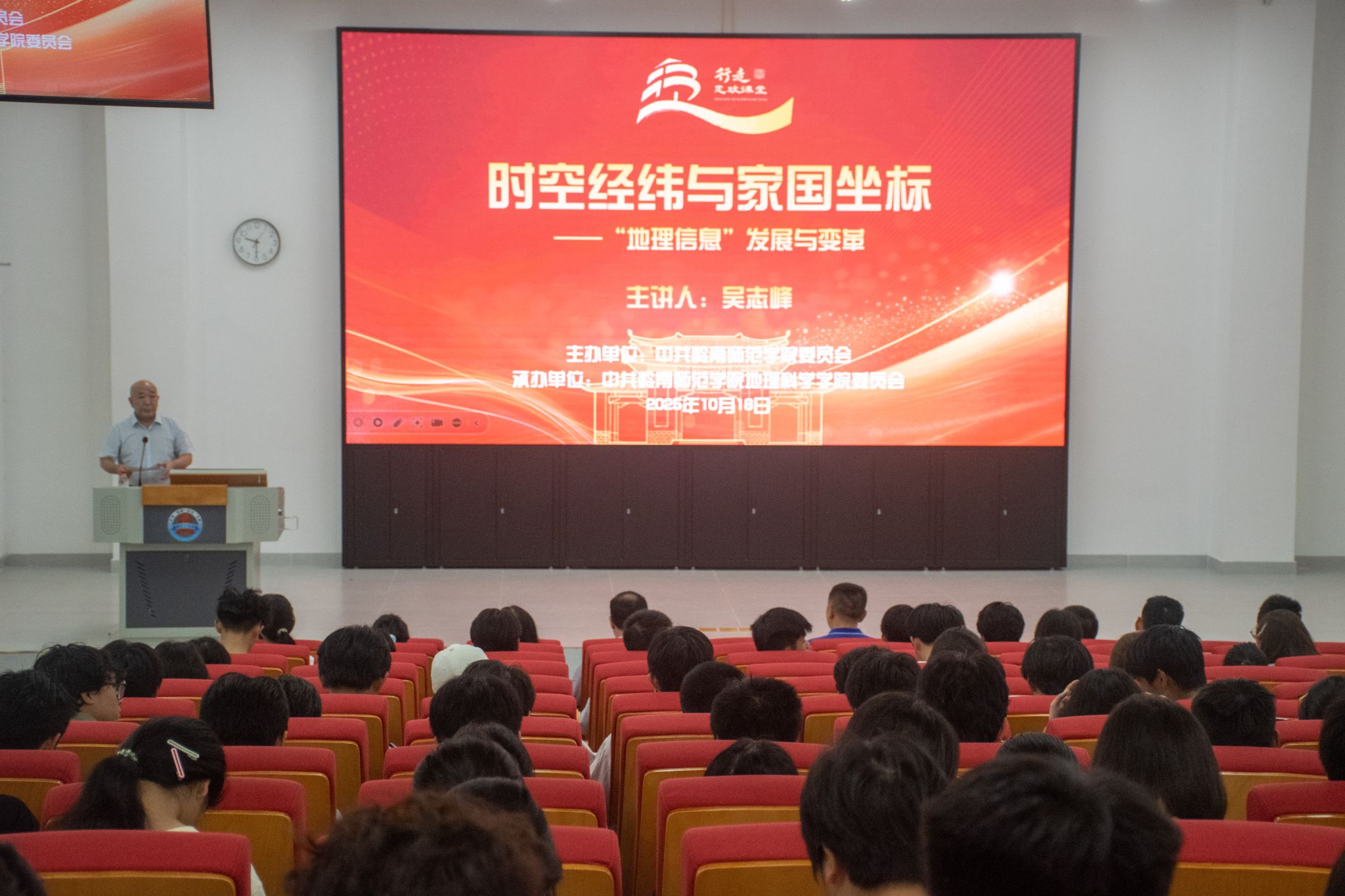 为深入贯彻落实习近平新时代中国特色社会主义思想,持续推进高校思想政治理论课改革创新,切实增强思政课的思想性、理论性与亲和力,由中共岭南师范学院委员会主办、中共岭南师范学院地理科学学院委员会承办的第十九期"行走的思政课堂"专题报告会,于2025年10月18日上午在湖光校区集贤楼201室顺利举行。
