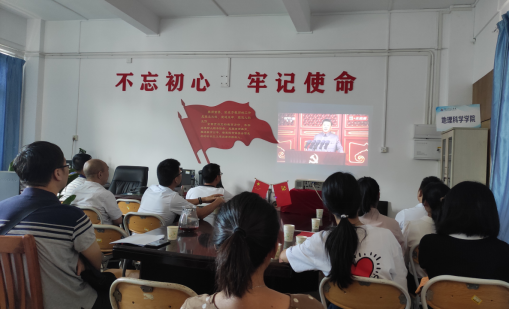7月1日,地理科学学院党委组织全院师生一同收看庆祝中国共产党成立100周年大会,学习热议习近平总书记重要讲话。