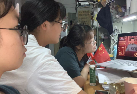 全体师生集中学习与自主收看相结合,在学院办公室、自习室、宿舍和复习场所同屏观看直播,热议习近平总书记重要讲话。直播现场庄严热烈,无论是英姿飒爽、整体划一的海陆空三军前进方阵,还是慷慨激昂、振奋人心的讲话,都深深震撼了屏幕前的我们,由衷感慨“没有共产党就没有新中国”,由衷感慨共产党百年征程所取得的丰功伟业。