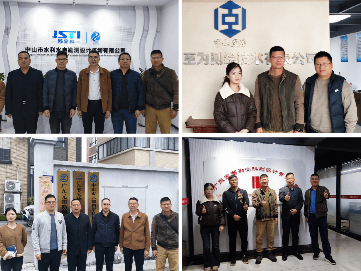 精准对接,深入走访五家行业企业。本次走访历时两天,学院领导一行在中山市测绘协会统筹协调下,先后前往协会会员企业中山市水利水电勘测设计咨询有限公司、广东元知勘测设计有限公司、中山市至为测绘技术有限公司、广东宏图勘测规划设计有限公司以及中山市规划设计院有限公司等五家单位。每到一处,学院领导均与企业负责人、技术骨干及人力资源管理人员展开务实座谈,详细了解企业发展现状、人才需求态势及对地理信息科学等相关专业毕业生的能力要求。