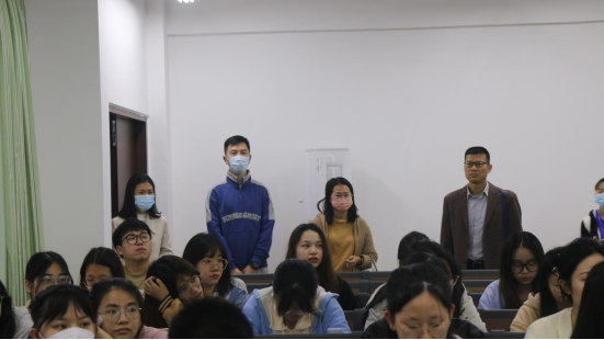 2023年2月20日早上,地理科学学院党委副书记王雄艺、学生党支部书记陈水英、团委书记梁津铭以及辅导员陈连花对课堂进行检查,意在了解学生精神状态,规范课堂纪律。