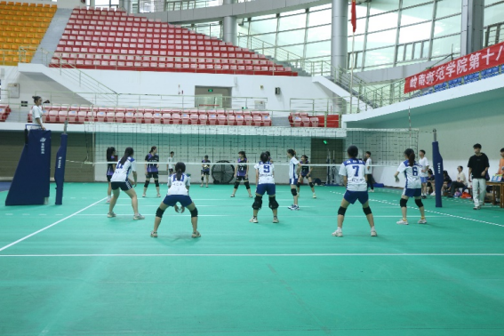 4月22日16时,岭南师范学院第十八届学生排球比赛女子普通组在尚体馆成功举行,女子普通组的冠军在我院与生科院之间产生。开赛之前,赛场周围早已人头攒动,观众们都在期待这场精彩的赛事。比赛开始后,生科院凭强大的实力,率先拿下前两局,随后我院积极调整战略,在第三局中以25:23的小比分差距险胜。比赛进入白热化阶段,我院继续保持良好攻势,配合默契,频频得分,最后两局均以25:11的比分战胜生科院,夺得女子普通组桂冠。