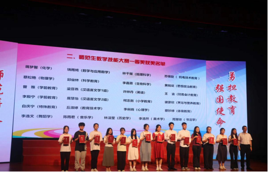图|师范生教学技能大赛一等奖颁奖现场(左二)