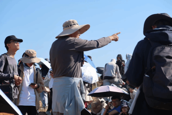 10月12日,虽然腾格里沙漠的狂风裹沙扑打着行进的队伍,师生们在险峻坡面匍匐前进,但是没有任何成员轻言放弃,最后成功登顶海拔数百米的沙丘。在途中,来自岭师地科院的牛东风老师、黄日辉老师、黄龙老师,为同学们详细介绍沙漠的形成、分布和草方格沙障防沙治沙的技术,使同学们对沙漠环境和治理有了一个直观、系统的了解。同时,牛东风老师为同学们讲述在沙漠研究领域前人的科研励志故事,鼓励同学们要不畏艰难、务实求真、勇敢创新,立远大志向,成国家社会有用之才。