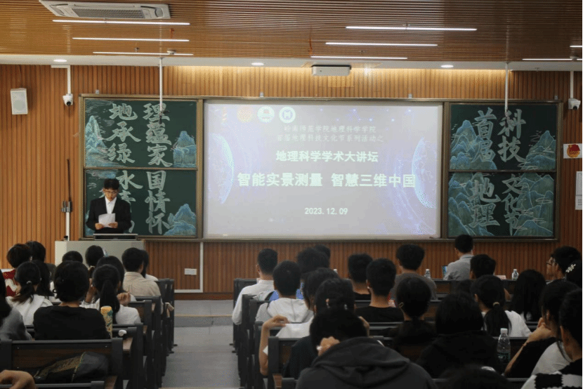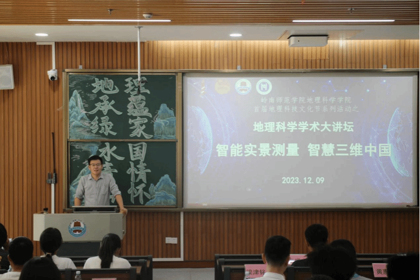 12月9日15时,地理科学学院首届地理科技文化节之地理科学学术大讲坛于第五教学楼104教室顺利举行。出席的领导、嘉宾、有地理科学学院党委副书记王雄艺、中海达集团广东分区公司总经理陈俊兵、中海达华南大区解决方案总监马彬、广东分公司客户经理韦增义、学院团委书记梁津铭、信息系统系主任杨鑫以及各班学生代表。本次大讲坛由马彬主讲。